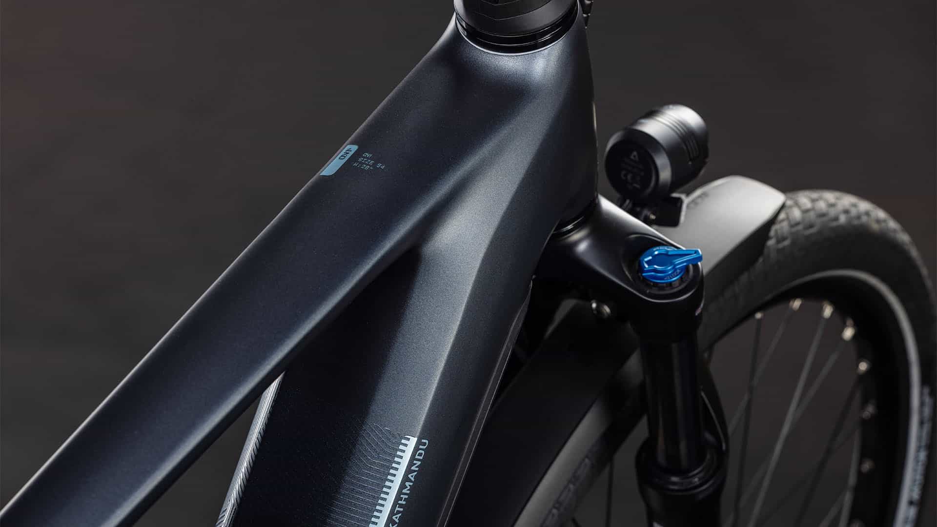 Der Rahmen des CUBE Kathmandu Hybrid sieht auf den ersten Blick vielleicht unspektakulär aus – auf den zweiten erschließen sich jedoch seine Eleganz und Klasse, außerdem die vielen Innovationen und cleveren Details. Dabei ist der samt 800 Wh PowerTube Akku ästhetisch und sauber ins Design integrierte CX Motor von Bosch nur eins der Highlights. Ein weiteres ist unsere Efficient Comfort Geometry, die harmonisch mit der 100 mm Federgabel Hand in Hand arbeitet, was die Kontrolle vor allem bei schwierigen Bedingungen optimiert. Dazu die interne Zugverlegung, die den cleanen Look des Chassis unterstreicht. Was noch? Ein vielseitiges, beinahe unzerstörbares UDH für einfache Ersatzteilverfügbarkeit, ein integrierter Kettenschutz und unser stabiler, robuster, überaus formschöner integrierter Gepäckträger IC 3.0, auf dem alles Platz findet, was auf Abenteuertour mit muss.