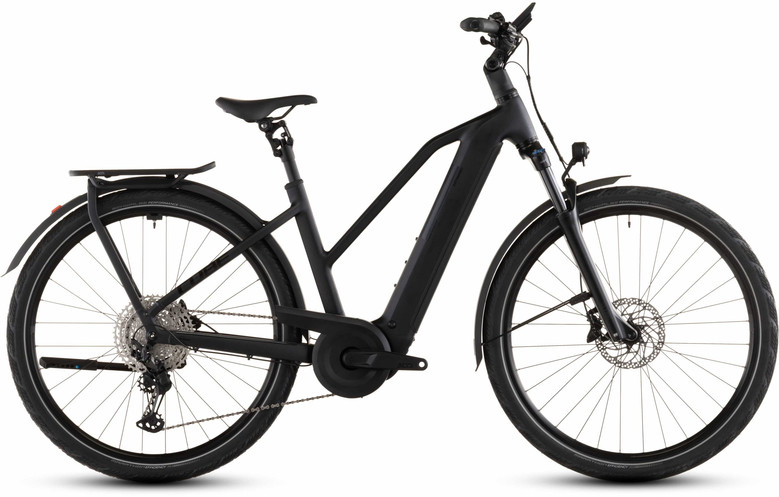 Elegantes, zeitloses Design – das ist das CUBE Kathmandu Hybrid. Auf den ersten Blick zumindest. Ein zweiter gibt den Weg frei auf jede Menge Innovationen und clevere Details. Dabei ist der samt 800 Wh PowerTube Akku ästhetisch und sauber ins Design integrierte CX Motor von Bosch nur eins der Highlights. Ein weiteres ist unsere Efficient Comfort Geometry, die harmonisch mit der 100 mm Federgabel Hand in Hand arbeitet, was die Kontrolle vor allem bei schwierigen Bedingungen optimiert. Dazu die interne Zugverlegung, die den cleanen Look des Chassis unterstreicht. Was noch? Ein vielseitiges, beinahe unzerstörbares UDH für einfache Ersatzteilverfügbarkeit, ein integrierter Kettenschutz und unser stabiler, robuster, überaus formschöner integrierter Gepäckträger IC 3.0, auf dem alles Platz findet, was auf Abenteuertour mit muss.