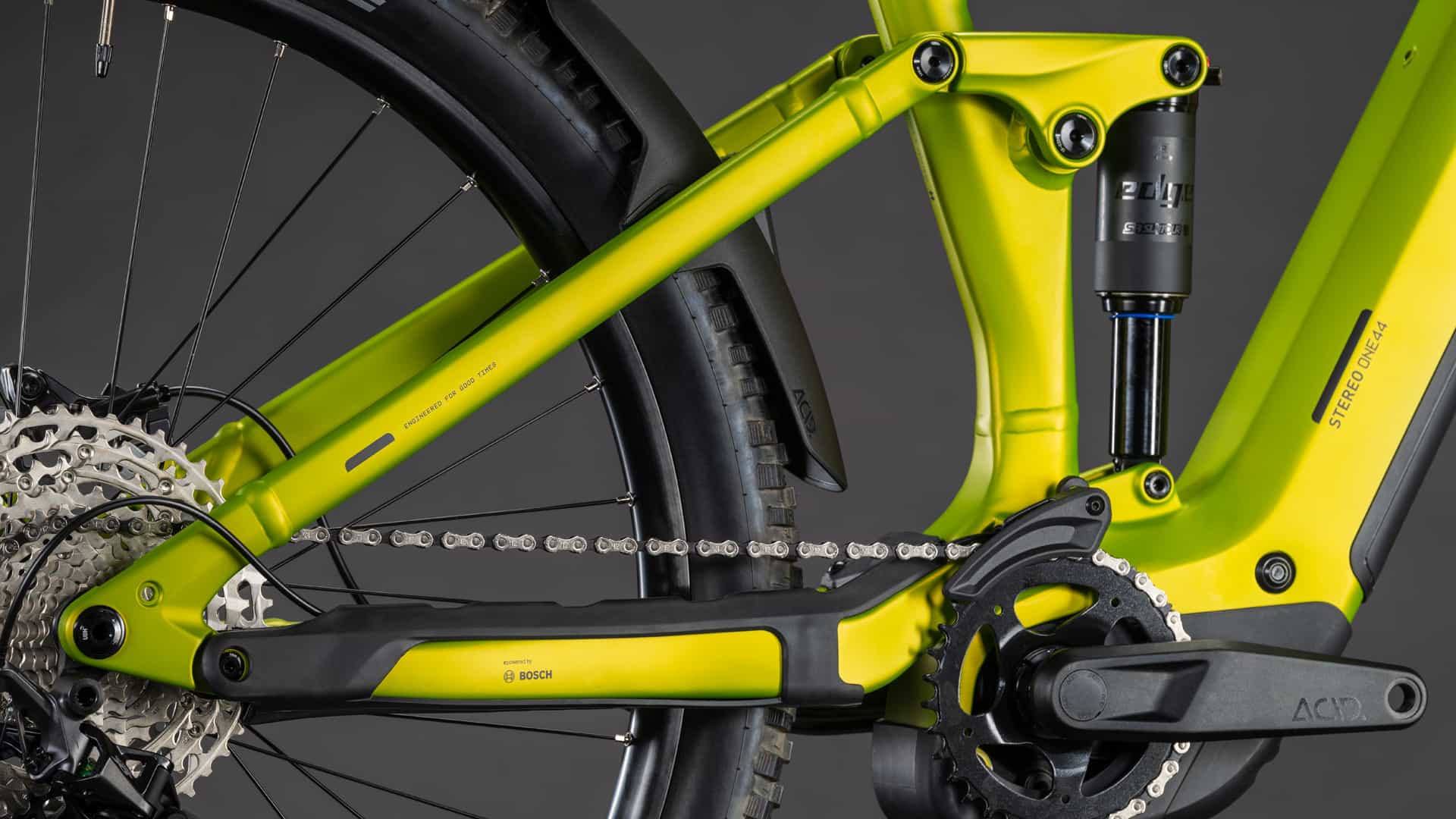 Bei der Entwicklung des Stereo Hybrid ONE44 haben wir uns auf top Performance in Kombination mit hoher Anpassbarkeit konzentriert. Insofern ist dieses Chassis mit einem kompakten 800 Wh PowerTube Akku bestückt, der den leistungsstarken Bosch CX Motor mit bis zu 100 Nm Drehmoment engagiert vorwärtstreibt. Dazu gibt’s 140 mm Federweg an der Front und am Heck sowie Montagepunkte für Schutzbleche. Unser Internal Cable Routing spielt der cleanen, eleganten Optik des Rahmens in die Karten. Was noch? Ein UDH Schaltauge für einfache Ersatzteilverfügbarkeit, eine unauffällig und formschön ins Design integrierte Direct Mount Kettenführung – und wer einen Gepäckträger nachrüsten möchte, profitiert von den SIC 2.0 Aufnahmepunkten. Dank Size Split haben wir für so gut wie alle die richtige Passform im Angebot.